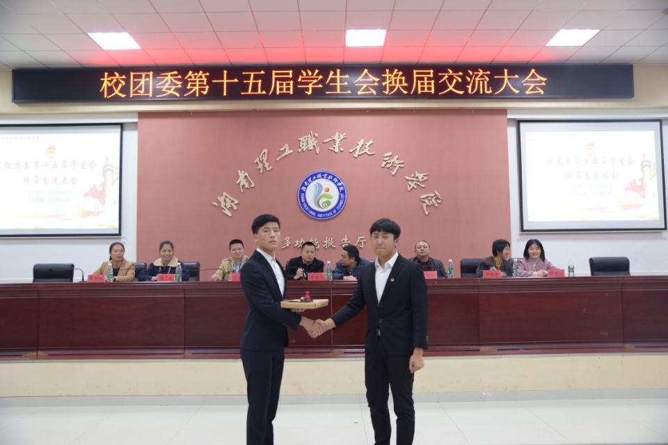 大会在激昂的团歌声中拉开帷幕。首先团委李丽莎老师带领团学干部们带来了气势恢宏的理工五问五答。紧接着第十四届校学生会主席金满福上台发言,从思想引领、制度建设、权益工作、联络交流四个方面总结了学生会工作。随后领导、老师为第十四届校学生会主要学生干部颁发了聘书。第十四届校学生会主席与第十五届主席进行交接。