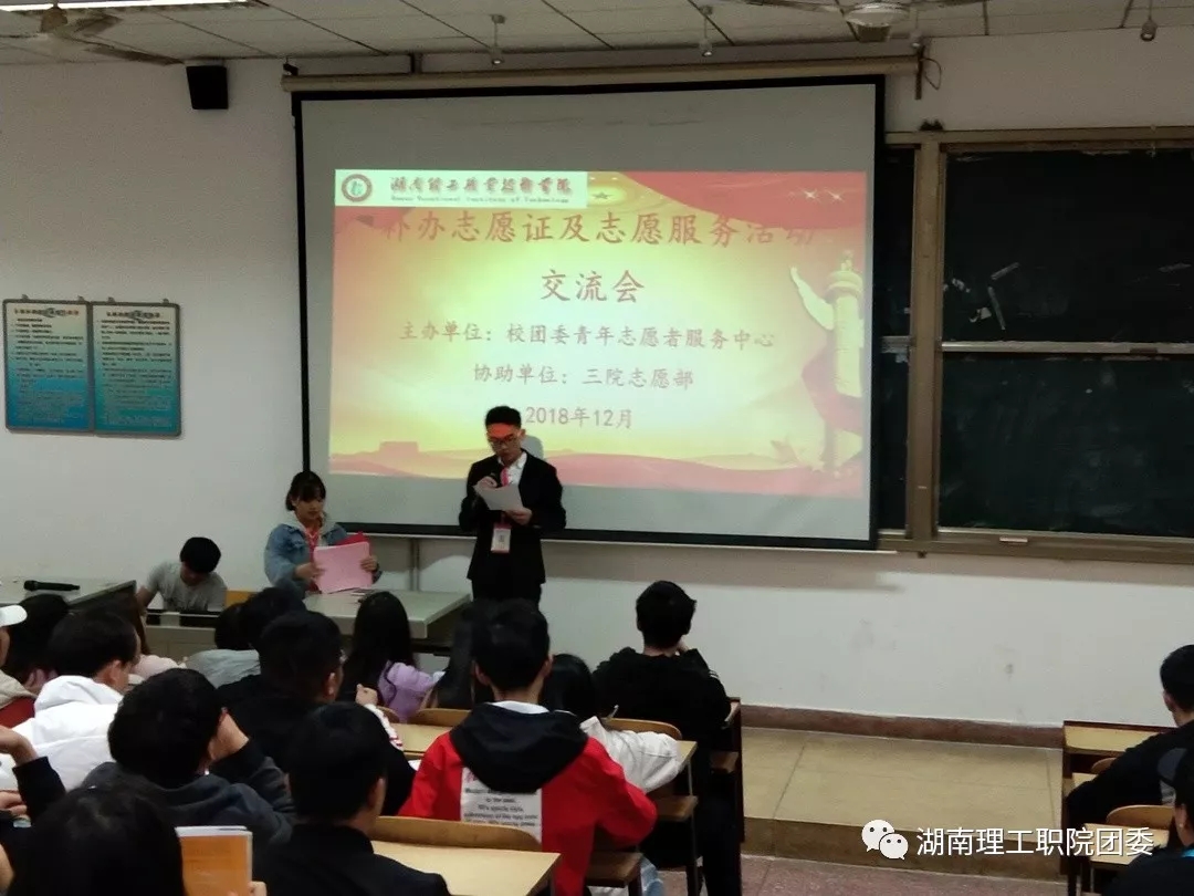 为提高同学们对志愿服务重要性的认识,深入了解志愿汇APP的使用方法,我校青年志愿者服务中心于12月4日12:20在明理楼110教室召开了志愿工作交流会,校团委青年志愿者服务中心全体成员,三院志愿部全体人员以及大一大二各班班长共同参加了此次交流会。