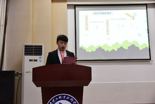 大会在激昂的团歌声中拉开帷幕,接着,校学生会组织部部长聂志坤、青年志愿者服务中心主任舒中亮 、学创部部长刘瑶先后汇报了2018年“三会两制一课”、志愿者服务、“每课一讲”工作开展的情况以及今年的工作计划,分享了工作体会。随后,校学生会主席熊伟志发言,他指出了上一学期团学工作中出现的一些问题,并对2019年校学生会的工作计划进行了汇报。