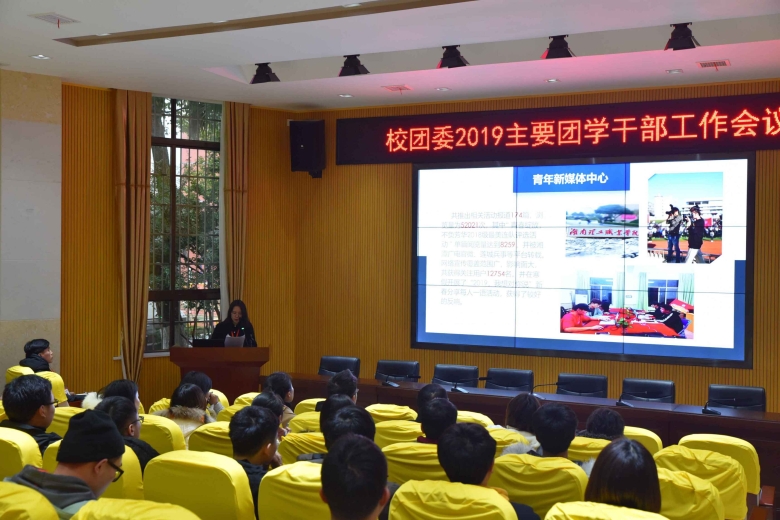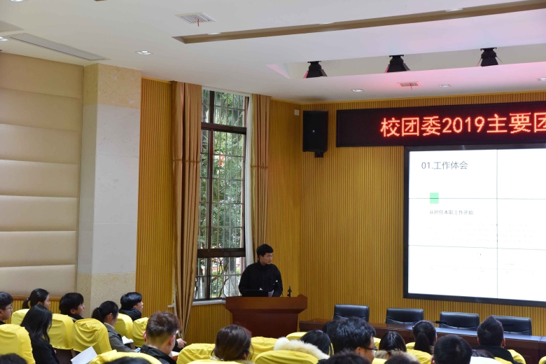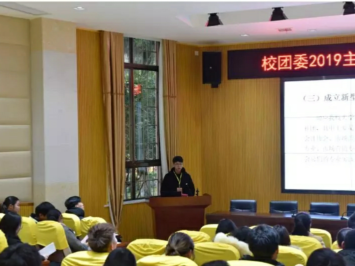 最后李强作总结发言,他以“凝聚青年、服务大局,谋求共青团工作新突破”为题对全年共青团工作要点进行说明,他指出,2019年,校团委将在校党委领导下,服务学校发展大局,聚焦主责主业,强化思想引领、推进共青团改革、创新活动载体、突出品牌特色、夯实宣传阵地。他希望主要团学干部要重学习,紧跟最新思想、要求;抓基础,狠抓团支部建设、思想引领;强品牌,提升团学工作影响力;求创新,把握时代特征,开展青年感兴趣的活动。