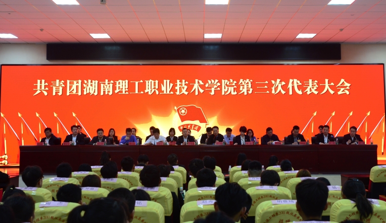 2019年4月27日上午,共青团湖南理工职业技术学院第三次代表大会在博学楼报告厅隆重召开。校党委书记叶星成,共青团湘潭市委书记王利,省发改委机关团委副书记杨扬,校党委副书记、工会主席朱奇卫,校党委委员、副校长洪丕庆,校党委委员、纪委书记刘洋,校党委委员、副校长周金玉,校党委委员、组织人事处处长宋乃冰,湖南科技大学团委书记马缤辉、湖南工程学院团委书记张细政以及湖南城建职院、湘潭医卫职院、湖南电气职院、湖南国防职院、湖南吉利汽车职院团委负责人,学校各部门负责人和全体团员代表共170余人出席开幕式。开幕式由学工保卫处处长田野主持。