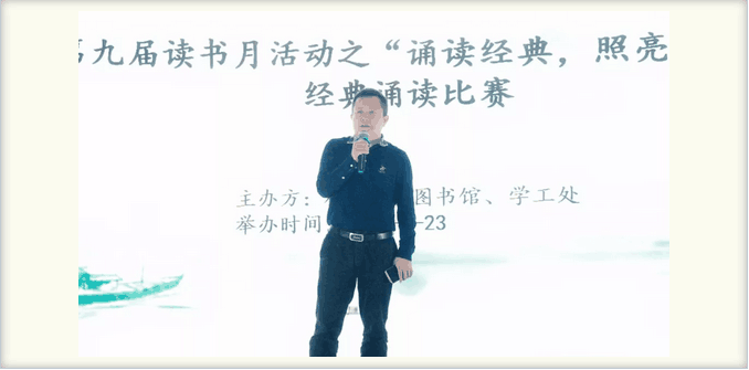 5月23日晚19:00,由校团委、图书馆、学工处联合主办的第九届读书月活动之“诵读经典,照亮人生”朗诵比赛决赛于博学楼报告厅举行。党委书记叶星成,党委副书记、校长陈静彬,副校长周金玉,图书馆馆长杨明球、学工保卫处处长田野、校团委书记李强,思政教研部彭军林出席活动并担任比赛评委,各二级学院领导、老师及同学代表观看了比赛。