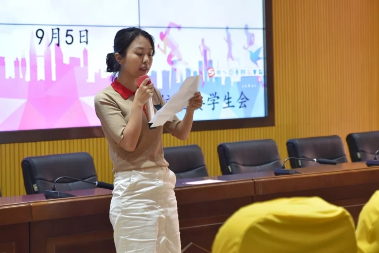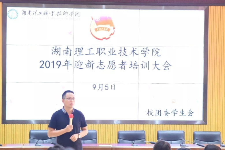 9月5号下午,校团委在知行楼105教室召开2019迎新志愿者培训会。校团委书记李强,校团委老师李丽莎以及迎新志愿者70余人参加会议。会议由校学生会主席熊伟志主持。