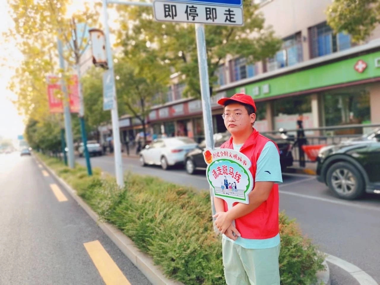 从9月7日开始,志愿者每天交通早、晚高峰期在校门口斑马线开展文明劝导和“礼让斑马线”活动宣传。活动过程中,志愿者们精神饱满,手持提示牌提醒行人注意观察来往车辆、有序通过斑马线,用微笑和敬礼向主动减速礼让行人的司机朋友致意、点赞;并向行人宣传遵守交通规则文明出行理念,成为了上班早高峰中一道亮丽和美的风景线。