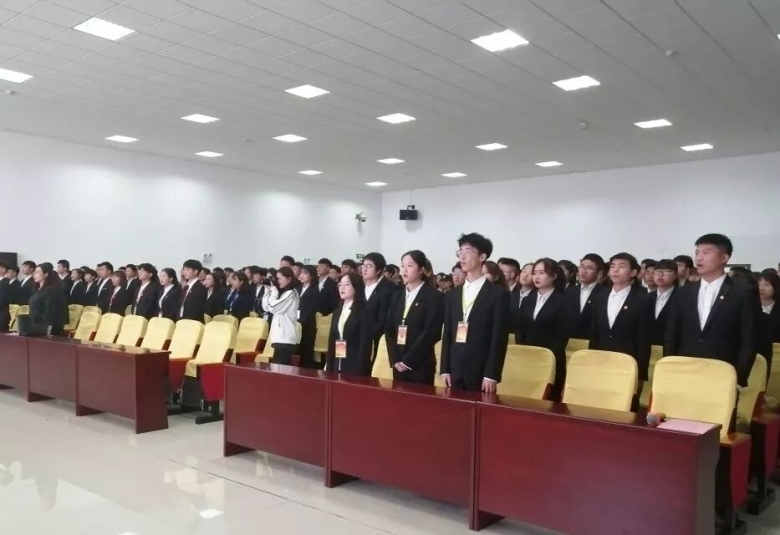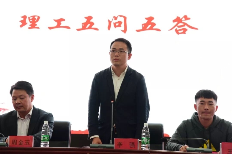 大会在激昂的团歌声中拉开帷幕,团委书记李强与在场所有团学干部进行气势恢宏的“理工五问五答”。