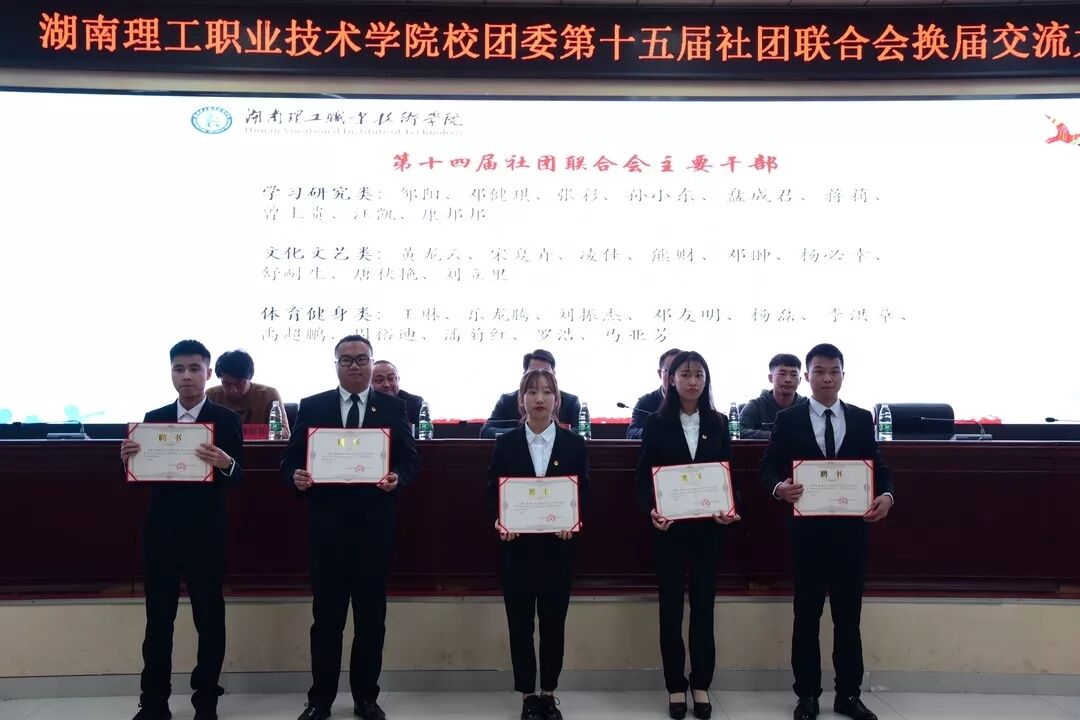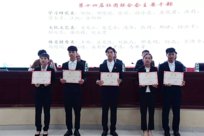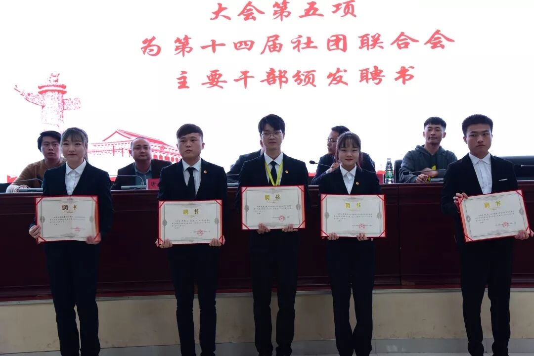 第十四社团联合会主席李彬对过去一年工作进行了总结,并希望新一届社联干部牢记社联宗旨,引导和帮助各学生社团共同营造一个和谐、丰富的校园文化氛围。