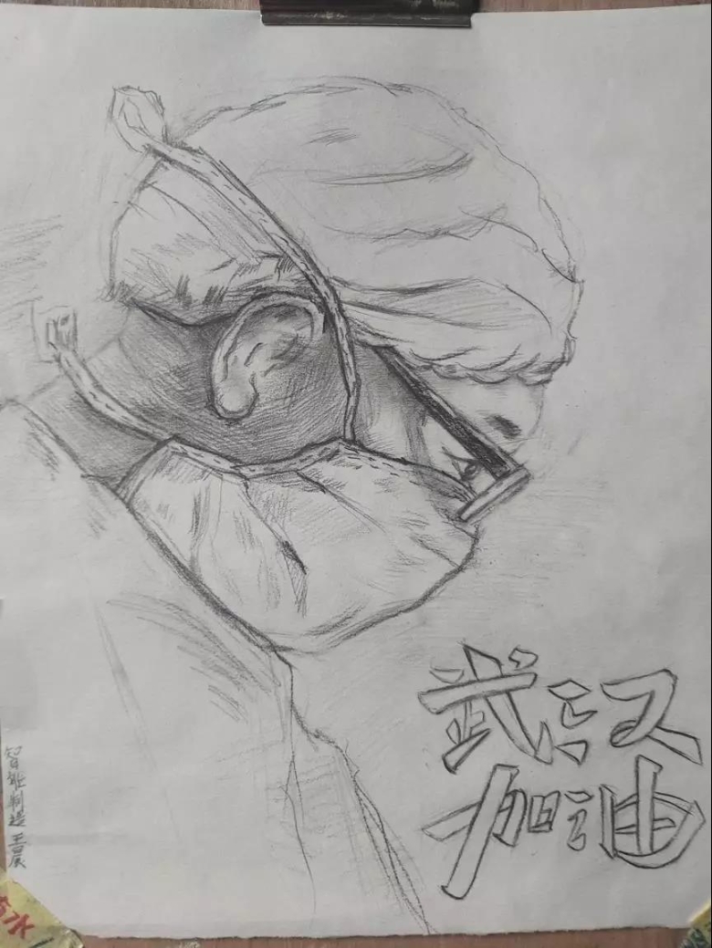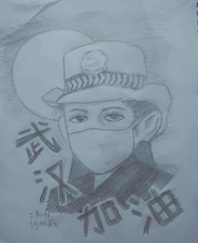 2020年初疫情爆发,全国人民都陷入了恐慌之中,是一群白衣天使把我们从病魔的手中拉出,是警察同志们不畏困难,为我们拉起保卫线,让世界见识到了什么是中国精神,什么是中国速度。在疫情面前,我们不能冲到第一线,但是保护武汉,我们在行动,我也相信一切都会好起来的,中国加油!武汉加油!所以我画了一个人民警察的形象,致敬代表着那些无私奉献,令人敬佩的人民英雄!