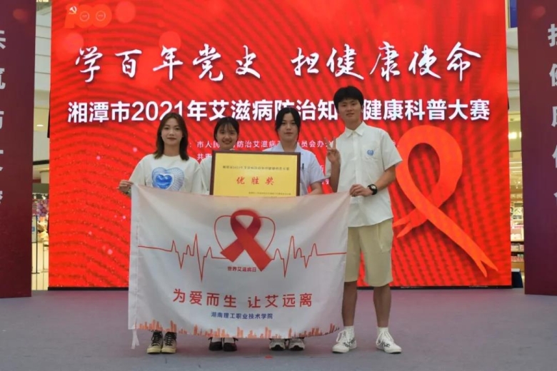 为提高广大群众对艾滋病严重危害的认识,增强防病意识和自我保护能力,5月27日湘潭市岳塘区举行了以“学百年党史,担健康使命”2021年艾滋病防治知识健康科普大赛。湖南理工职业技术学院代表队在院团委与后勤处的组织下参加了比赛。