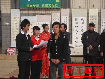 为发扬国粹艺术,秉承和壮大“伟人故里,艺术圣地!”的传统文化,以及进一步提高我院学生对国粹文化的认识和鉴赏能力,使书法艺术能深入到我们大学生的生活当中,加强协会成员与外部的书艺交流,提高会员及书法爱好者的书法创作能力。11月25日上午,由院团委主办,我院行云书法协会承办的以“我爱祖国”为主题的“第三届湖南省大学生书法篆刻作品展湘潭巡回展理工职院展”在我院隆重开幕。出席的嘉宾有湘潭书画名城文化艺术有限公司董事长马红兵,中国书法家协会会员、湘潭市直机关书协副主席何水林,中国书法家协会会员、湘潭市直机关书协副主席贺书元,中国书协会员、湘潭市书协副主席彭和平,湖南省美术家协会会员、湘潭市花鸟画家协会副主席兼秘书长王汉武,中国教育协会艺术委员会会员、湖南省美术家协会会员李云光,湖南省美术家协会会员、湘潭市花鸟画家协会理事杨迪平,湖南省书协会员、湘潭书协理事、湘潭市岳塘区书协副主席王振武,著名画家李永林,湖南省书协大学生书法委员会委员秦伟良、湖南省书协大学生书法联合会秘书长吴章波,常务副秘书长陈建等以及来自湘潭各高校书协的代表参加了本次巡展的开幕式。同时,院团委社联指导老师邓博文参加了此次书法展。