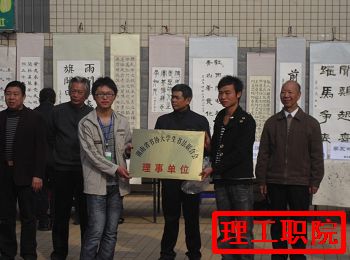 授与我院“湖南省书协大学生书法联合会理事单位”牌匾