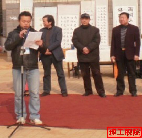 开幕式上,我校院团委邓博文老师、书法协会会长肖亚辉发表了讲话,最后,由邓老师宣布巡回展本站正式开幕。