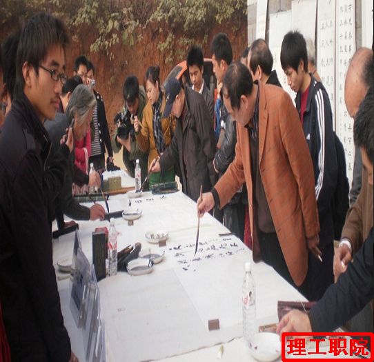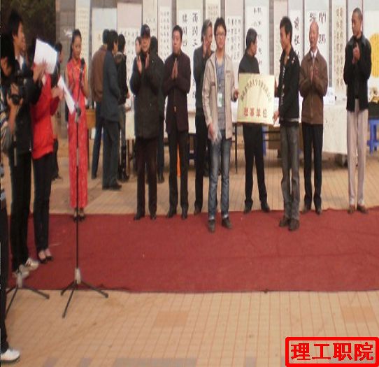 2009年11月13日上午10点整,湖南省第三届大学生书法作品湘潭巡回展理工职院展在我校食堂前坪正式开幕。
