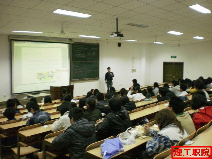 社联创业协会组织4月11日晚7点30分在三教多媒体三举行了一场创业知识讲座,冯向阳老师为此次讲座主讲。冯老师的话语幽默风趣,使得现场气氛异常活跃。同学们聚精会神的听着老师讲述生活中的许多创业列子,现场气氛轻松而活跃,讲座持续了近两个小时才结束。