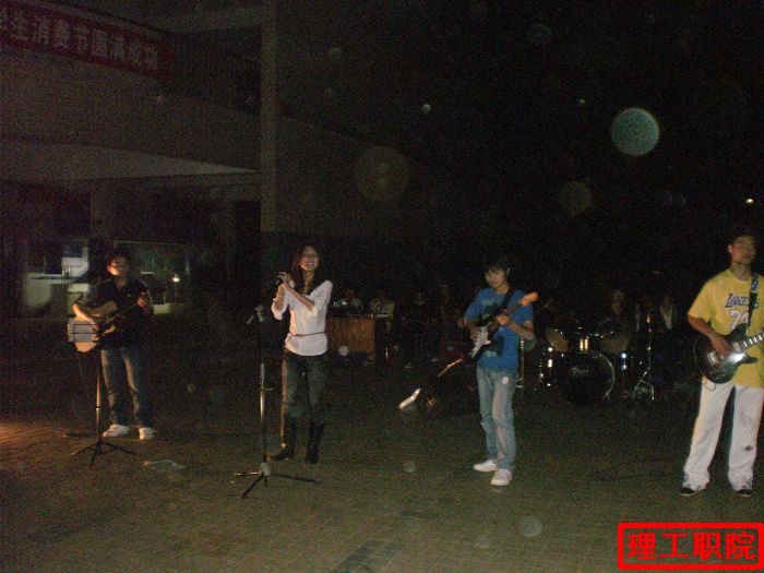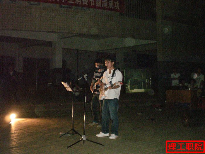 一切前期准备做好之后,活动准时在7点半开始,出场的是我院颇有人气的光轮乐队,一曲曲激情的歌曲围绕我们的耳朵。除此之外,出场的还有新生乐队,充满青春活力的歌曲回响整个理工职院的夜空,此次晚会给我们带来一场盛大的视听享受。