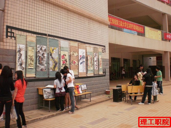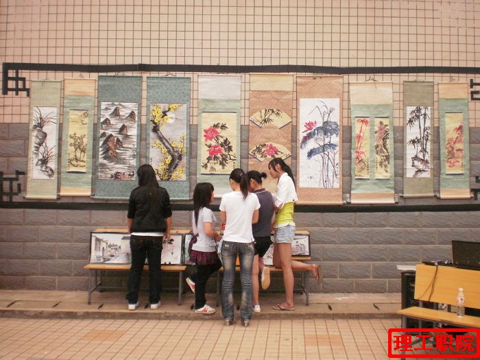 我院社联美术协会于5月12日在食堂前坪举行一场主题为“中国风”的美术展览,出席嘉宾有社联主席郑博。