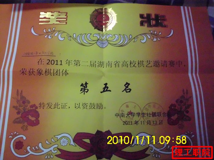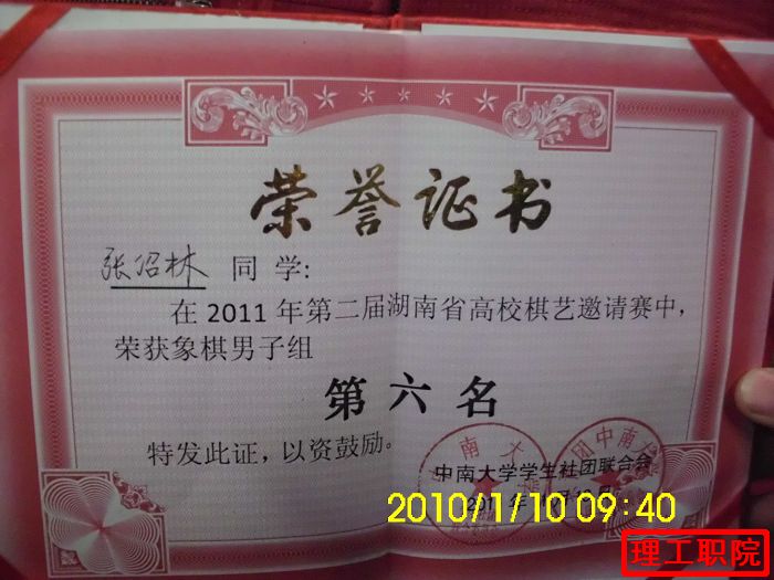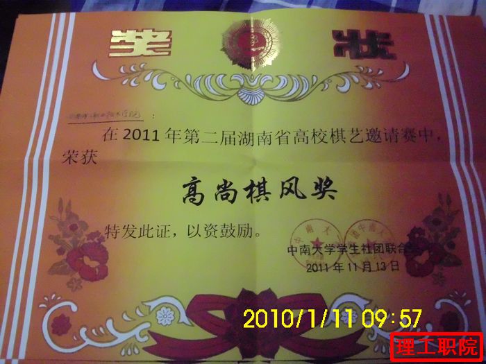 11月12、13日,我院社联棋艺协会指导老师方国安带领八名会员赴中南大学参加湖南省高校棋艺邀请赛,参赛院校共42所,我院获得“高尚棋艺风”、象棋团体第五名,张绍林同学获得象棋男子组第六名。