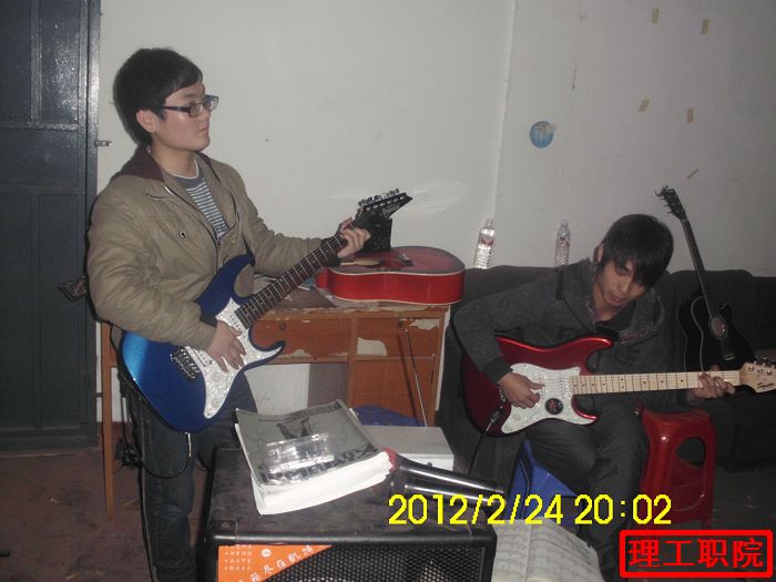 2月24日晚7:00,社团联合会吉他协会成员于社联办公室(食堂三楼)开课。社团联合会副主席彭炜、何斌也参与其中。