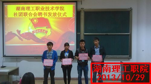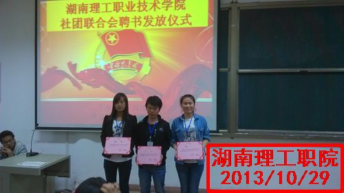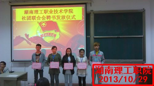 迎着十月的气息,我们迎来了最激动人心的时刻,湖南理工职院于2013年10月29日在多媒体二举行社团联合会新老干部颁发聘书书仪式,由院团委钟诚诚老师出席此次仪式。