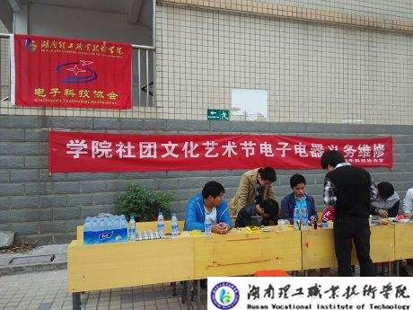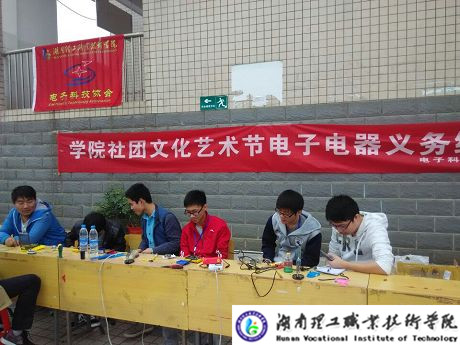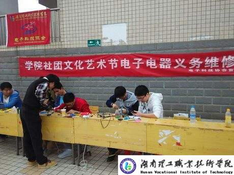 为积极开展社团文化艺术节,大力提高当代大学生的技能与动手能力,湖南理工职业技术学院电子科技协会于11月24日在食堂前坪组织开展电器义务维修活动。