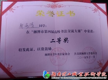 11月21日,我院社团联合会行云书法协会受湘潭大学邀请参加“湘潭市第四届高校书法交流大赛”,参加比赛的有行云书法协会鄢海清等多名同学。