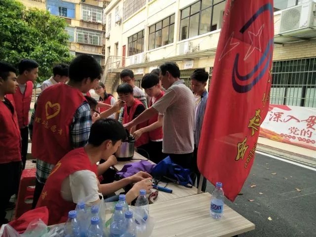 当同学们来到霞光社区时,闻讯赶来的居民们陆陆续续从家中拿来不能正常工作的电风扇、电饭煲等家电。志愿者们还耐心地像居民们讲解家电使用和保养的方法。居民们对协会成员的服务态度表示赞赏,纷纷竖起了大拇指。