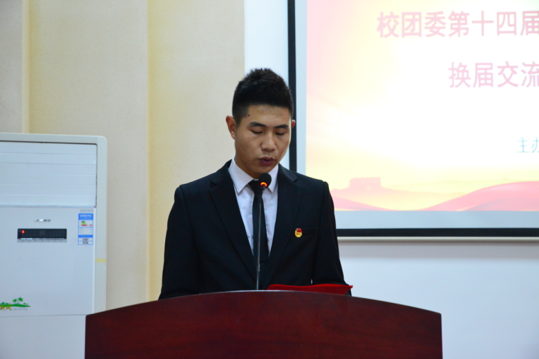 第十四届社团联合会主要学生干部上台集体亮相,面对团旗进行庄严宣誓。