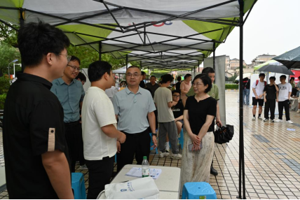 为深入贯彻党中央、国务院针对高校毕业生就业工作决策部署,响应教育部 2025 届高校毕业生就业 “百日冲刺” 行动的号召,我校充分挖掘校友资源在助力学生就业方面的积极作用,全力搭建起校友企业与母校学子之间沟通的桥梁。6月20日,我校在博爱楼前坪成功举办2025届毕业生校友企业专场招聘会。校长李科,副校长何瑛、王凤斌亲临现场,与校友企业代表和毕业生亲切交流。