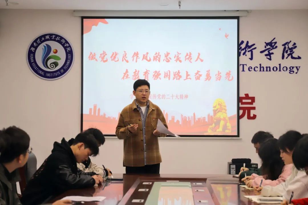 为深入学习贯彻党的二十大精神,提高政治素养和思想理论水平,更好地担负起新时代新征程赋予的重要职责。上午,湖南理工职业技术学院九华分院党支部书记代增远开展了《做党优良作风的忠实传人,在教育强国路上奋勇当先》主题党课活动。