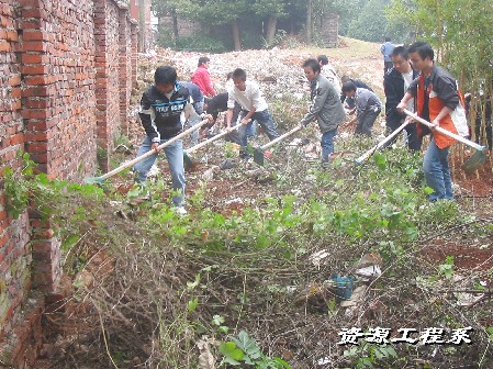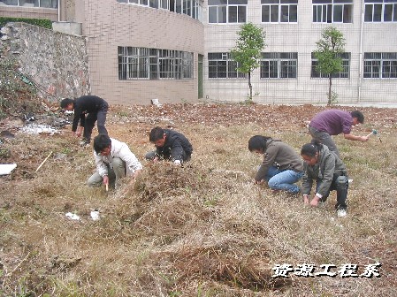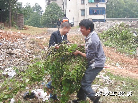 2008年11月20日下午1:00,由李治国老师带领我系06、07届入党推优分子,共35人,对我院三教学楼后面空地上的杂草和垃圾进行了彻底的清扫,劳动进行了近一个多小时。参加者认真清扫着每一个卫生死角,忙得满头大汗,但依旧笑容满面,展现了入党积极分子吃苦耐劳、乐于奉献良好的精神风貌,再一次诠释率为人先、甘为楷模的真正内涵。清理后的场地面貌焕然一新,他们的这一举动得到了老师、同学们的一致好评。 徐瑜婧 (文) 邹伟平(图)