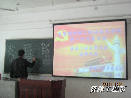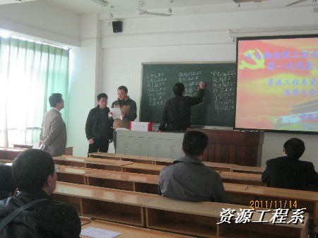 李书记首先代表系党总支对本次大会的主要任务进行了说明,传达了学校党委关于做好学院第一次党代会有关工作的文件和会议精神。他指出,今天大会将选举出席我院第一次党代会的代表,是党内政治生活中一件非常重要的大事,全体党员要充分认识党代表选举工作的重要意义,要站在讲全局、讲政治的高度,认真负责的履行党员权利,选出符合条件、群众公认的党员代表出席我校第一次党代会。此次代表大会有33名党员老师,李书记宣布候选人名单,并发给在场的各党员 计票纸,由赵奇老师负责计票,唐洪江老师唱票。经过民主投票从21名候选人选出了17名党员老师为资源工程系参加学院第一次党代会代表。