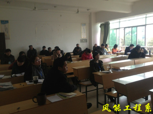 2014年3月10日,风能工程系组织全体教职员工在三教207教室开展了政治学习。系党总支书记何瑛主持本次会议,学习活动通过主题宣讲、文件资料学习、交流讨论等形式进行。