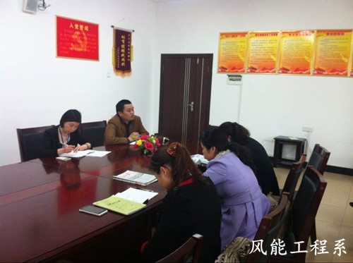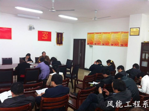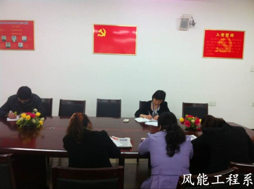 为深入贯彻党的群众路线实践教育活动,提高党员党性修养,4月28日下午,风能工程系在实训楼二楼党员活动室召开了“入党为什么,为党干什么”的专题座谈讨论会,会议由系党总支书记何瑛主持,副书记胡志军、副主任杨益梅及全体党员教师参加了本次讨论。