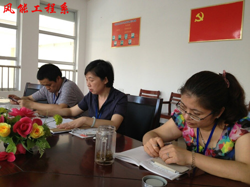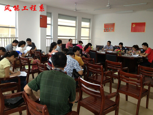 为进一步贯彻习近平总书记系列讲话精神,不断加强理论武装,推动风能工程系党的群众路线实践教育活动第二环节的“回头看”工作,风能工程系党总支结合实际情况,进一步细化学习内容,2014年9月9日下午3点,风能系全体党员教师在实训楼党员活动室开展了政治理论学习。本次政治理论学习由何瑛书记主持,郭赟登老师领读。