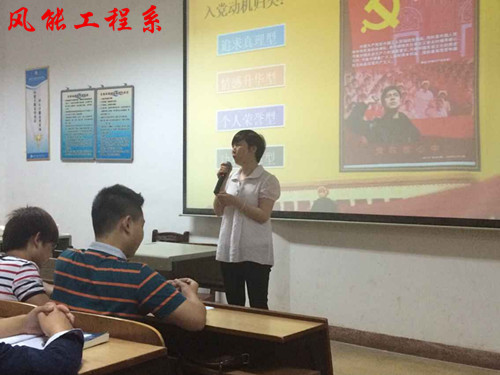 为巩固和拓展党的群众路线教育实践活动成果,持续深入推进党的思想政治建设和作风建设,学院根据中央精神制定了详细的专题教育实施方案,在全校各系深入开展党的专题教育。近日,风能工程系党总支书记何瑛给系部全体学生党员上了一堂“如何发挥大学生党员先锋模范作用”的党课。