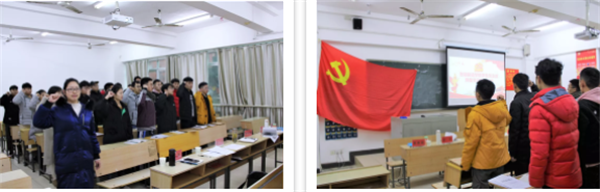 会议第四项议程,由沈亚老师带领全体党员重温入党誓词。