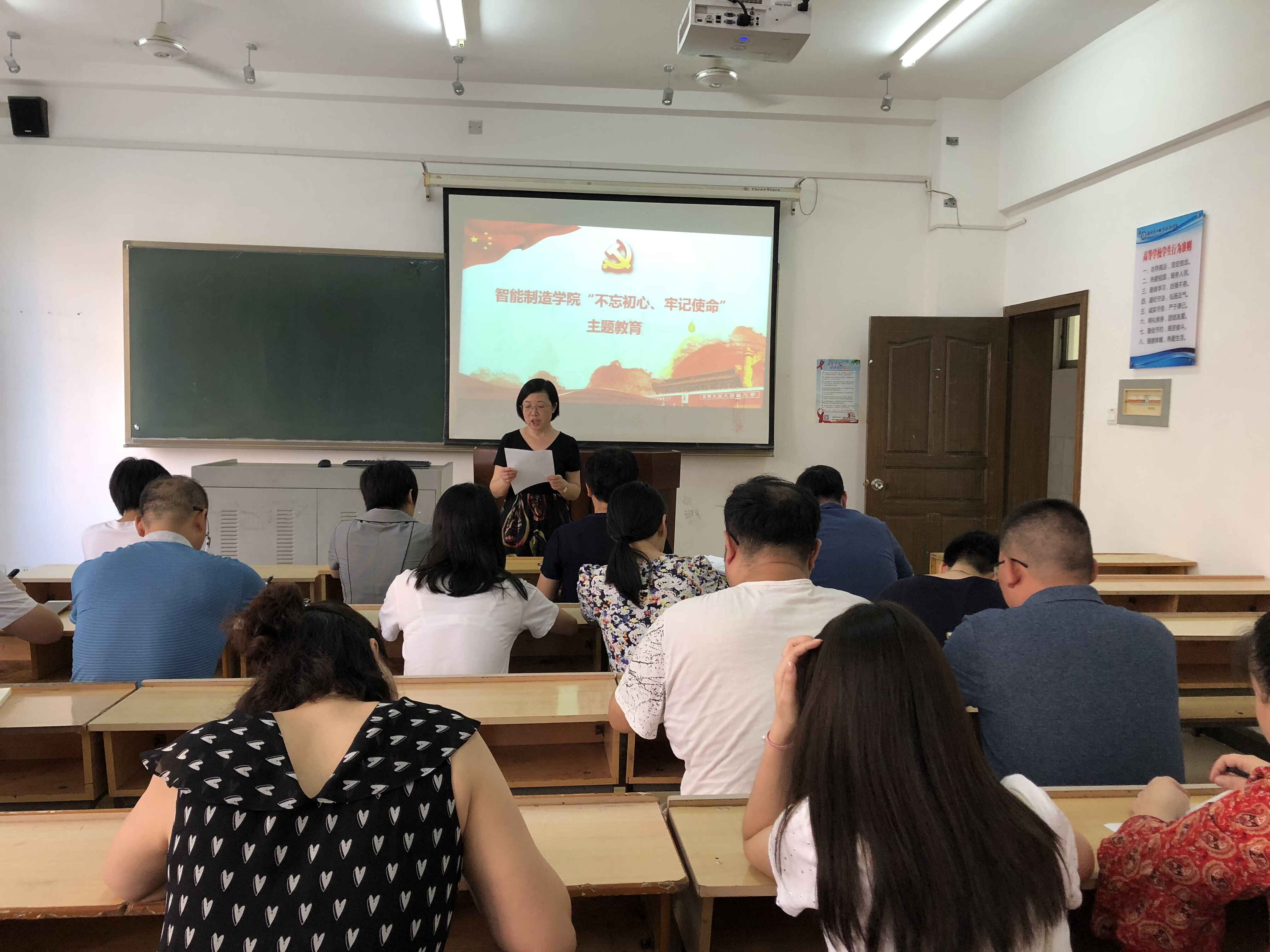 9月12日,智能制造学院党总支在明理楼206教室召开“不忘初心、牢记使命”主题教育第一次集中学习,学校“不忘初心,牢记使命”第二组指导组组长陈静彬、副组长黄霞春到会议现场指导工作,院党总支书记何瑛主持会议,全体教师党员参加会议。