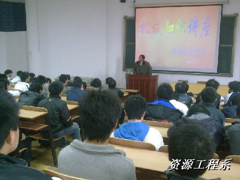 机械协会于2009年11月14日早上9:00分在三教学楼多媒体四教室举办了“机械知识”专题讲座。这次讲座主要针对09级大一学生举办,由资源工程系邀请的实习工厂资深技师吴国英老师主讲。