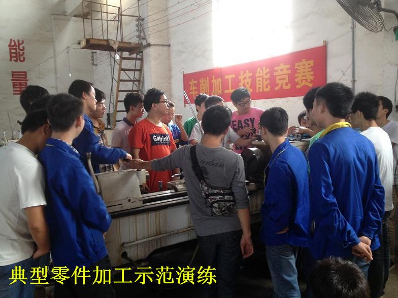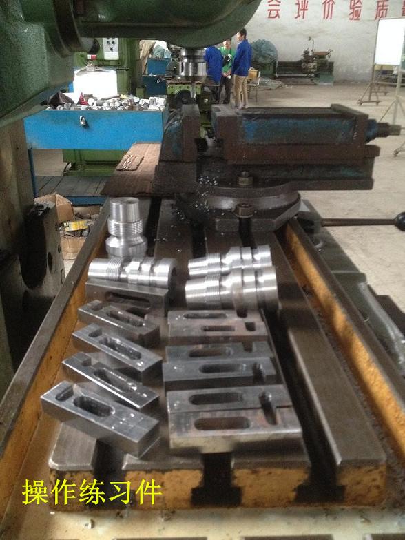 在已经进行的一个月的工厂实践教学时间内,机械1121班完成了《典型零件的普通加工》课程的工厂理实一体教学,指导老师根据专业课程标准及专业技能抽考标准,在工厂现有教学设备的基础上,设计了普车模块与普铣模块的典型零件图样与加工要求,并且严格要求每一个学生独立完成规定的教学任务,并进行绘图测量、评分登记。在整个教学过程中,将安全生产加工知识、手工绘图、工艺卡片填写、刀具刃磨、机床调试与操作、工件测量等教学内容融会贯通,指导老师通过对每一个工件的测评把关,激发了同学们积极主动的学习热情与精益求精的工作品质,培养了同学们吃苦耐劳的劳动意识与遵守纪律的团队精神。