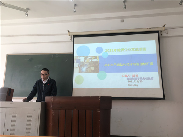 2021年11月30日,智能制造学院组织全体任课教师听取了刘立薇、胡盼两位老师参加湖南省职业院校教师素质提高计划2021年高职高专院校国家级培训项目的经验汇报。两位老师分享了国培期间的学习内容,谈及了国培的心得体会、收获和对职业教育的一些思考。