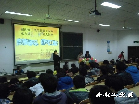 为加强校园文化建设,引导广大同学们树立挑战自我,敢于尝试的精神,11月28日晚资源工程系在三教多媒体一举行了第九届“挑战杯”主持人初赛,本次活动的主题为“展示青春风采,圆梦理工舞台”,出席本次初赛的评委和嘉宾有:团总支学生会主席团成员,以及各部门成员,初赛由12级新生甘范静和陈书慧主持。