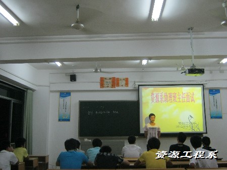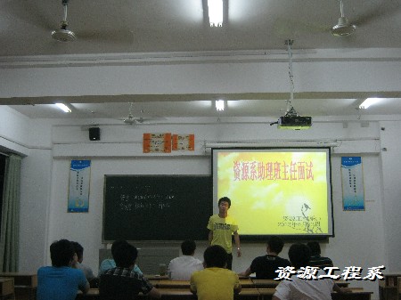 (资源系 李军 刘掌供稿)为进一步确保2012级新生顺利入学,更好地引导新生适应大学生活,资源工程系拟招募2012级新生助理班主任10名(根据2012级班级人数而定),以协助做好新生入学等一系列工作。我系于6月13日晚上,在三教108教室举行了资源系助班班主任面试,有资源工程系团总支副书记副主任胡志军,系团总支书记陈柏舟,辅导员赵奇等领导老师出席,以及15名助班候选人参加。