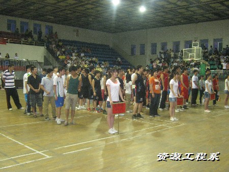 (资源系 李军供稿)为了营造一个朝气蓬勃的校园环境,丰富同学们的课余生活,通过比赛增强同学们的体魄,培养同学们的团队意识和集体荣誉感,提高同学们的素质和修养。5月7日,晚19点20在体育馆隆重举行了第七届“理工杯”篮球联赛。我院副院长洪丕庆、院团委书记罗美霞、学工处处长宋乃冰、思政课部部长肖高、资源系党总支书记主任何瑛、信息工程系党总支书记主任田拥军、经贸社科系党总支书记主任谭境佳、三系学管干事等领导出席开幕式。此次开幕式吸引了我系100多名学生前来观看。