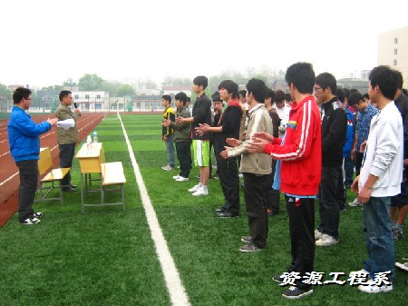 (资源系 李军供稿)在这繁花似锦、春意盎然的季节里,迎来了“资源工程系第一届足球杯”。为了积极推动校园体育运动的蓬勃发展,展示当代大学生的青春活力,加强同学们的体质锻炼,提高凝聚力,丰富课余生活,让同学们有一个展现自我的平台,在我系领导的支持与关心下,在同学们的热情关注下,我系第一届足球赛于2012年4月16日,中午12点30,在操场拉开帷幕。出席此次开幕式的嘉宾有:资源工程系党总支副书记副主任胡志军,及所有学团干部共同参加。仪式由:龙娇同学主持。
