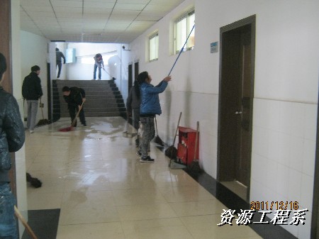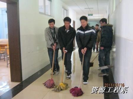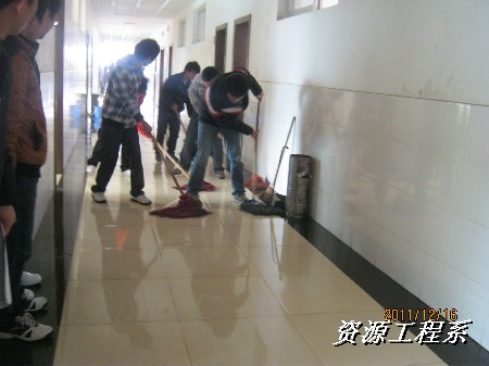 (资源系 李军供稿)为迎接学院党建评估专家的到来,2011年12月16日,中午12点30,在三教1、2楼由资源工程系团总支学生会劳动部组织的“迎评估,学团干部在行动”的义务大扫除。参与此次活动的人员由学团各部门所有成员组成。