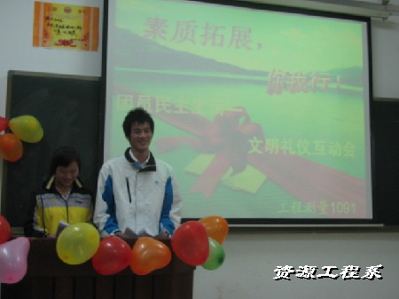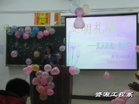 本次活动由资源工程团总支主办 ,组织部承办,各班委会协办。以班会形式在各班级举行,切实将文明礼仪落实到每个同学身上。活动中有知识竞答,观看视频,精彩辩论,情景互动等项目,同学们积极参与,气氛活跃,活动的开展进行有序,效果良好。