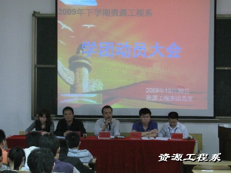 本次资源系学团大会旨在欢迎09级学生干部的加入,使新一届学团干部熟悉我系学团组织的构成,围绕学团建设、校园建设、学生日常工作重心,对本学期即将开展的学团工作、学团活动进行简要介绍,引导学团干部树立服务同学、服务系部、服务学院的意识,推进系部学团工作开展,做好系部与学生之间的桥梁。