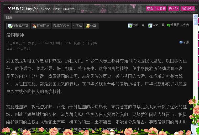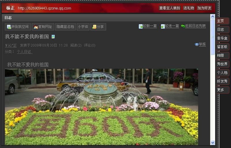 作为华夏族的子孙,我感到骄傲和光荣。我已经深深的恋上这美丽的国度,为了她我可以贡献我的所有。