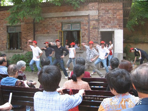 由于曙光社区的老人们大多数都是企业退体或下岗职工,因而他们的生活是空虚、乏味,对于同学们的到来,无疑是给了老人们一个惊喜!资源系师生为这些可爱可敬的老人带来了精彩的文艺节日,虽然表演场地十分简陋,凹凸不平,但全场还是座无虚席。