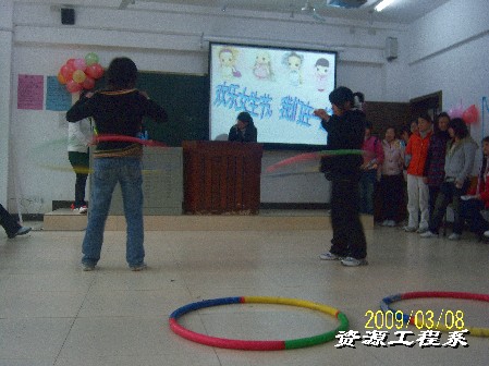 本次活动的项目充满着童趣,像踢毽子、跳绳、转呼啦圈等活动项目,大家积极参与了进来,形成了男女其乐融融的场面。每轮比赛的获胜者将有幸获得我系男生送上的玫瑰或康乃馨,以示美好的祝福。