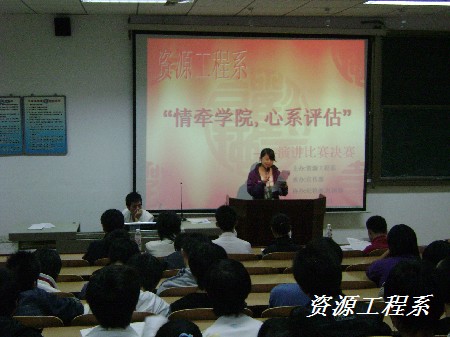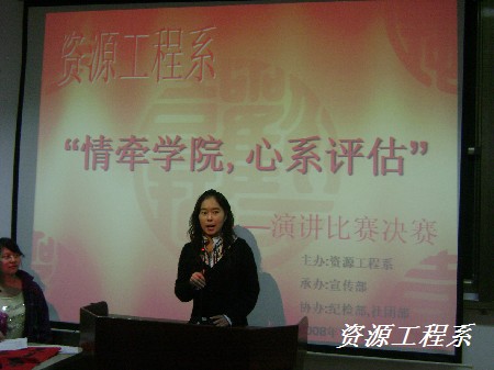 资源工程系于2008年11月3日 晚7:30在多媒体三举行了“情系学院,心系评估”演讲决赛,决赛选手来自于初赛脱颖而出的16同学。经过一番激烈角逐,其中六位选手脱颖而出,进入学院的总决赛。他们分别是:一等奖数控1072班刘凤,二等奖数控1081班刘威、数控1082班梁婷,三等奖地测1081班杨海滨、模具1082班黄家豪、数控1082班秦浩杰。